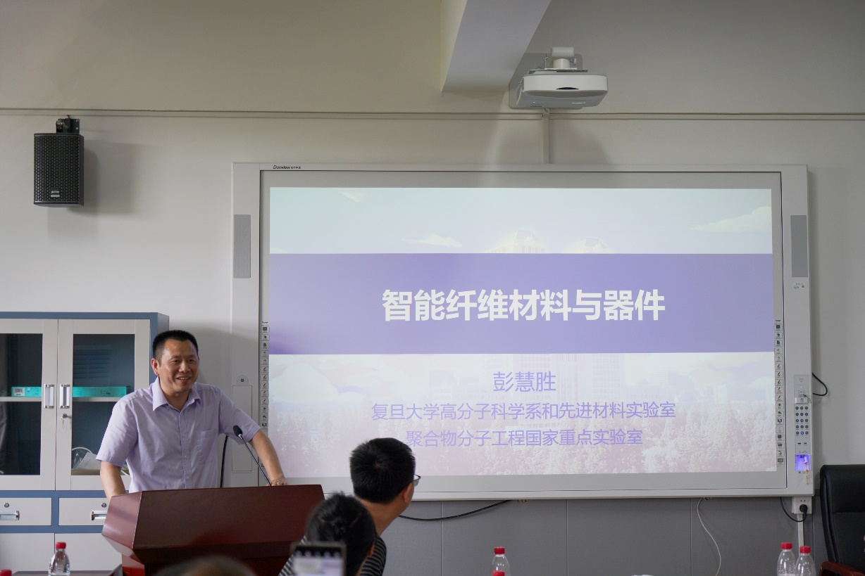 7月13日下午,国家杰青、教育部长江学者特聘教授、国家万人计划领军人才、复旦大学高分子科学系彭慧胜教授受邀来388vip太阳集团,在材化楼A304会议室作题为“智能纤维材料与器件”专题学术讲座。讲座吸引了机械工程学院、电气与信息工程学院、纺织服装学院和388vip太阳集团的青年博士参加,科技处处长黄中华、研究生处处长任振华、纺织学院副院长何斌出席,活动由388vip太阳集团副院长张儒主持。