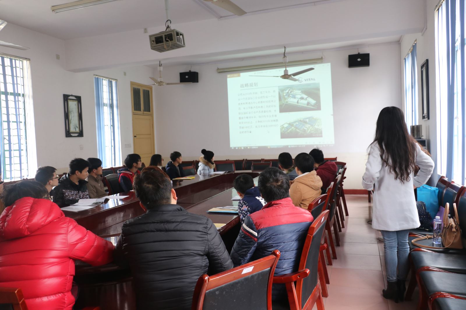此次招聘会由肖溢主讲。会议伊始,肖溢向同学们介绍了该公司的基本情况、公司的发展历程与公司丰富的企业文化,他让同学们了解到先导材料在当今社会的美好发展前景,其中,他还强调,该公司十分注重人才培养和人才储备。随后,肖溢又详细地介绍了该公司先进的机械设备、主要研发的材料、公司的职业规划以及优厚的薪酬福利,让同学们认识到创新能力的重要性。随后进入本次招聘会火热阶段——现场答疑环节,肖溢一一回答了同学们在该公司就业方面的疑惑。最后,肖溢以“先导的大门向您敞开,真诚期待大家的加盟”为结束语,结束了本次招聘会。有意向的同学投递了自己的简历,公司负责人与同学们进行了面对面交谈,进一步加强了双方的了解。