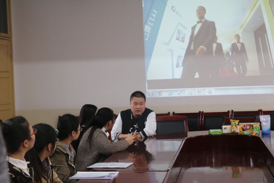 会议初始,主持人李莉以一个生动风趣的互动环节来缓解在场紧张的气氛。她要同学们用手摸着自己的耳朵,而自己却摸着下巴,这时有少许同学也跟着摸着下巴。她借用一个简单的游戏来告知同学们要注意力集中,有主见,不要随意去模仿别人。随后她开始播放该公司的宣传片,让同学们对该公司的地理位置和所处环境有了大致了解。之后,主讲人李少萍从公司的人才发展战略和广阔的提升空间向同学们做了一个简单说明。她强调该公司十分注重人身安全,无论何时何地,安全永远第一。随后,便开始了提问环节,在此期间主讲人就同学们最为关心的实习工资、住宿条件、工作环境等问题做出了细致的回答。随后,有意向的同学们向该公司提交了简历。该公司也当场赠送礼品。最后,提交简历的同学进行了一场笔试。