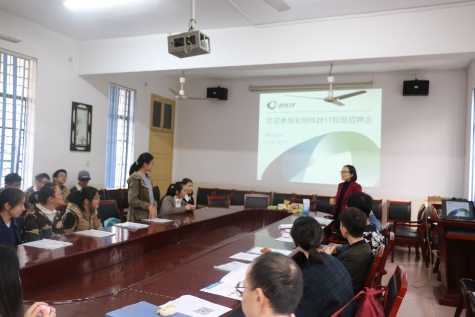 11月17日下午2点,惠州宝柏包装有限公司于388vip太阳集团四教306举行了2017届华南地区校园招聘会。参加本次招聘会的有该公司负责人李莉,陈菁,李少萍,学办老师刘思博以及应届大四毕业生。