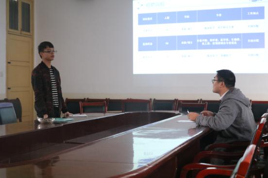 会议伊始,窦志明从公司的发展历程、工作环境、公司主要研发的体系、创新实力、以及该公司的地理位置等方面向同学们进行了介绍。其中,他重点提到了该公司最新研发的抗肿瘤药物-阿帕替尼,因其效果极佳,阿帕替尼成为了首个获得美国FDA批准的药物。随后,窦志明又详细地介绍了该公司的优势:具有科学严谨的工业流程、先进的机械设备、完善的培训体系、以及优厚的薪酬福利,让同学们充分了解到该公司较为雄厚的总体实力。同时,通过窦志明例举的部分成功人士的成长案例,同学们了解到创新型人才的重要性。最后,有意向的同学向公司负责人投递了简历,随后双方便进行了面对面的交谈。招聘现场气氛十分活跃。