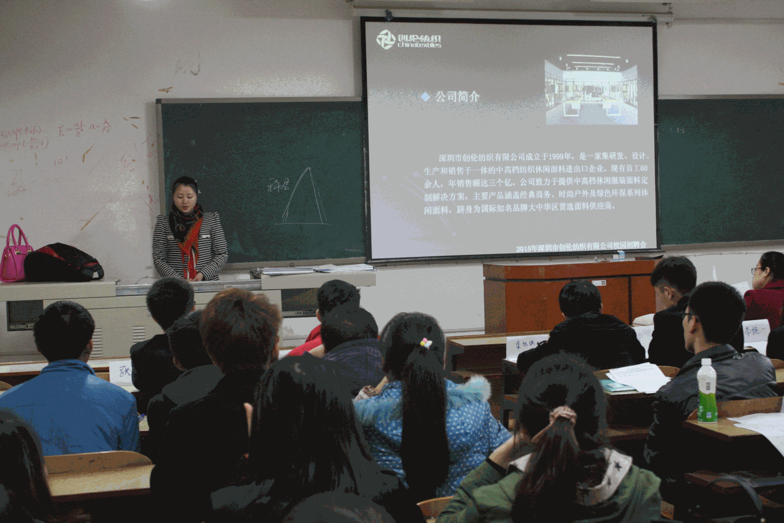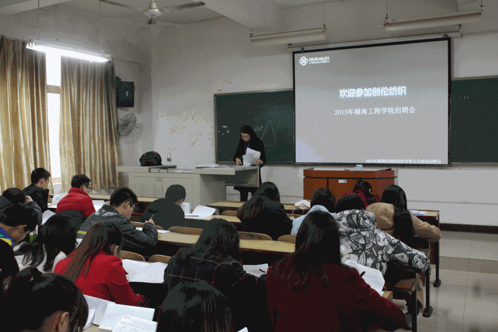 11月22日下午2点,深圳市创伦纺织有限公司来388vip太阳集团招聘,创伦公司人力资源部经理张芝兰前来做招聘宣讲,化工学院有意向的同学拿着自己简历前来应聘,现场秩序井然。
