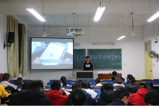 3月15日至3月19日期间,化学化工学院17~18级各班级分别召开以“知法懂法,主动维权”为主题的3.15维权教育班会。此次会议由各班班委自行主持,旨在普及化工院学生维权知识。