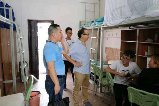 来到学海10栋、11栋,看到新生们将寝室整理得有条不紊,学院领导一行给予了肯定。学院领导关切询问新生的入学情况、家庭情况,“同学们来自哪儿?”“在这有什么不习惯的地方吗?”院领导与同学们亲切交流着,嘱咐同学们要注意安全,并勉励新生们要努力读书,度过一个有意义的大学时光。见到新生的家长们时,学院领导详细地向他们介绍了学院的情况,并向他们保证,学院一定会培养好这些新生,让他们成为对社会有用的人才,家长们也纷纷表示,对学院十分放心,将会全力支持学院工作。