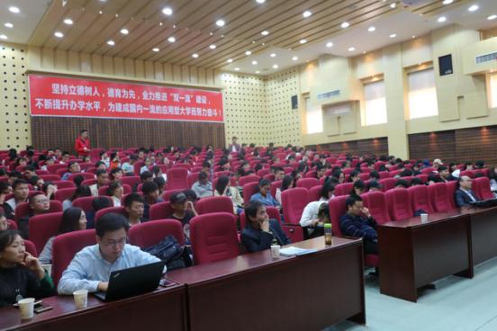 2017年11月6日下午14:30,应学院邀请盛泰集团三位代表人在图书馆二报告厅开展“创业大讲堂”,388vip太阳集团百余名有关专业学生参加此次会议。化学化工学院轻化工程专业老师陈镇主持会议。