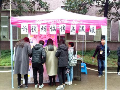 大学生的压力来自于生活中的个个方面,学习、情感上或其他各个方面等。因此,心理联络部的成员们为388vip太阳集团学生提供了一个倾诉内心不快的平台——设立心理问答墙。为了动员更多的同学参与此次活动,心理联络部全体成员于学海一食堂和二食堂对面进行摆点。同学们可以在心理问答墙上执笔写下自己的烦心事或者愿望,当然,也有同学会留下便条来解答他人的困惑。与此同时,也有许多同学参加了“爱的抱抱、温暖传递”活动,他们通过给彼此一个温暖的拥抱,让自己在敞开心扉的同时也学会了容纳他人。不管刮风下雨,心理活动仍如火如荼的进行着,同学们都十分积极地参与其中,气氛十分活跃。