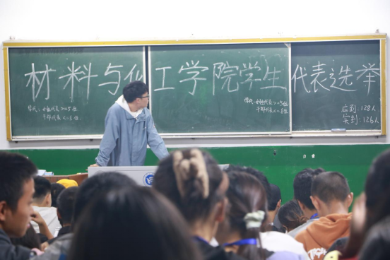 大会开始前,主持人介绍了本次会议背景,宣读了代表名额及构成、学生代表应具备的条件、代表产生的程序等内容。参会代表们认真审议选举办法,反复斟酌对比,秉承“公平、公正、公开”的原则,最终差额选举产生参加学校双代会的任文靖、唐昌盛等11名团员代表,石业诗、陶珊珊等20名学生代表。