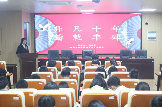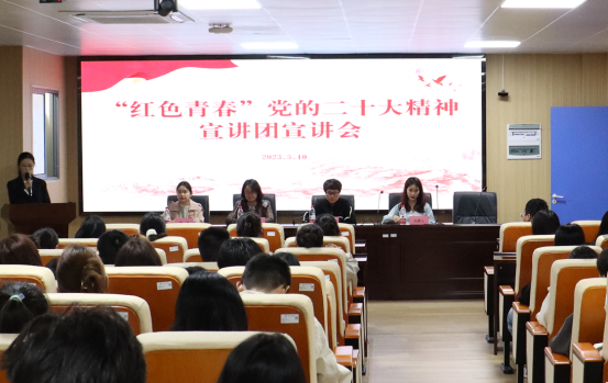 为深入学习宣传贯彻党的二十大精神,教育引导广大青年学子把思想和行动统一到党的二十大精神上来,5月10日晚,388vip太阳集团“红色青春”党的二十大精神宣讲团在388vip太阳集团开展了专题宣讲。本次宣讲由388vip太阳集团校团委主办,388vip太阳集团团总支承办。校团委书记刘琤、388vip太阳集团党委书记严明、团委专干张潇文、388vip太阳集团团总支书记黄玲以及100余名学生代表参加。