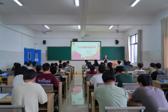 “树立正确的择业观、就业观,首先意味着怀有平实之心,综合考虑自身条件和社会需求,增强就业创业能力和职业转换能力。”黄玲为同学们讲授主题团课。她强调,同学们在加强求职技能的同时,也要加强安全意识,现如今有许多诈骗手段是以找工作为借口,希望同学们加强防电信诈骗意识,不断提升安全防范能力。分享会上,学院邀请了学院2024届高质量就业毕业生代表陈暎、贺晓荣、吴冰、李彬谦4人,结合求职过程中的所见所闻、所思所感,从简历制作、求职心态、就业渠道、应聘技巧等方面为学弟学妹们分享就业经验与心得。