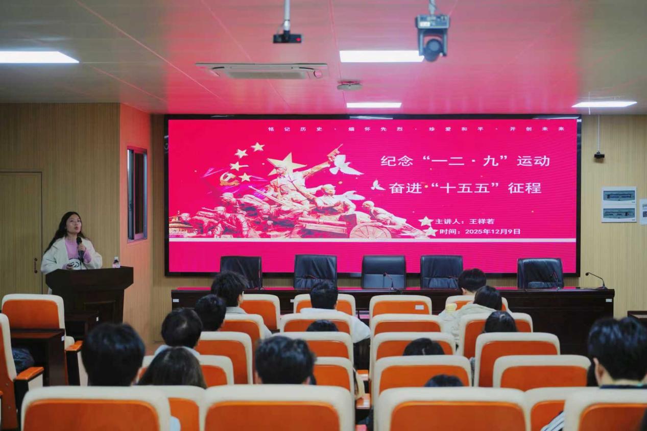 为赓续红色血脉、厚植家国情怀,引导广大团员青年从历史中汲取奋进力量,12月9日中午,388vip太阳集团团委在材化楼A301开展“纪念一二·九运动,奋进‘十五五’征程”主题团课。本次团课由学院团委书记王祥若主讲,2023级、2024级全体团支部书记及新发展团员参加学习。