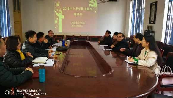 2018年4月28日下午化学化工学院党总支部在四教306会议室举行民主党派座谈会,学院党总支部书记胡爱钦,总支部委员副院长张何出席座谈会。