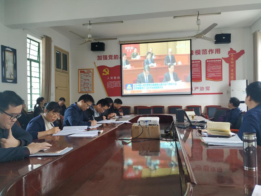 全体党员集中学习了《纪念中国人民志愿军抗美援朝出国作战70周年大会在京隆重举行 习近平发表重要讲话》的央视电视报道。就习近平总书记讲话内容进行了重点解读,认真领会伟大抗美援朝精神,让这一宝贵的精神财富跨越时空、历久弥新,永续传承、世代发扬。