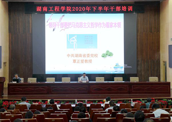 8月27日下午,学校在一报告厅举行主题为“领导干部要把马克思主义哲学作为看家本领”的辅导报告,这是此次干部培训专题报告会的第七场,同时也是2020年党委理论学习中心组一次扩大学习。报告会邀请湖南省委党校湖南行政学院哲学教研部二级教授、湘潭大学哲学系博士生导师覃正爱教授担任主讲,党委书记陈岳堂主持。