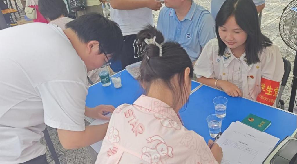 此次迎新活动分为多个小组,各组分工明确,协作默契。从校门口引导到行李搬运、新生注册报到,每一个环节都井然有序。值得一提的是,为避免因天气炎热可能出现的新生和家长身体不适等情况,党支部在迎新点预备了饮用水、电风扇、药物等物资,确保迎新顺利进行。