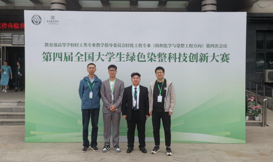 5月20日,由教育部高等学校轻工类专业教学指导委员会、中国纺织服装学会主办的第四届全国大学生绿色染整科技创新竞赛决赛阶段比赛中,388vip太阳集团,388vip太阳集团官网染者匠心团队(成员:刘纯嘉、廖冬诚、杨梦帆、谢瑜,指导老师:陈镇)凭借项目“植物染料提染一步法实验装置”获得了全国一等奖,实现了388vip太阳集团学子在该项赛事上一等奖的突破。此外,由周凤舒、周璇、郑英姿、周自勖等同学的项目“石榴皮提取液对凤仙花染料耐日晒性能的影响”获得全国三等奖(指导老师:汪南方)。