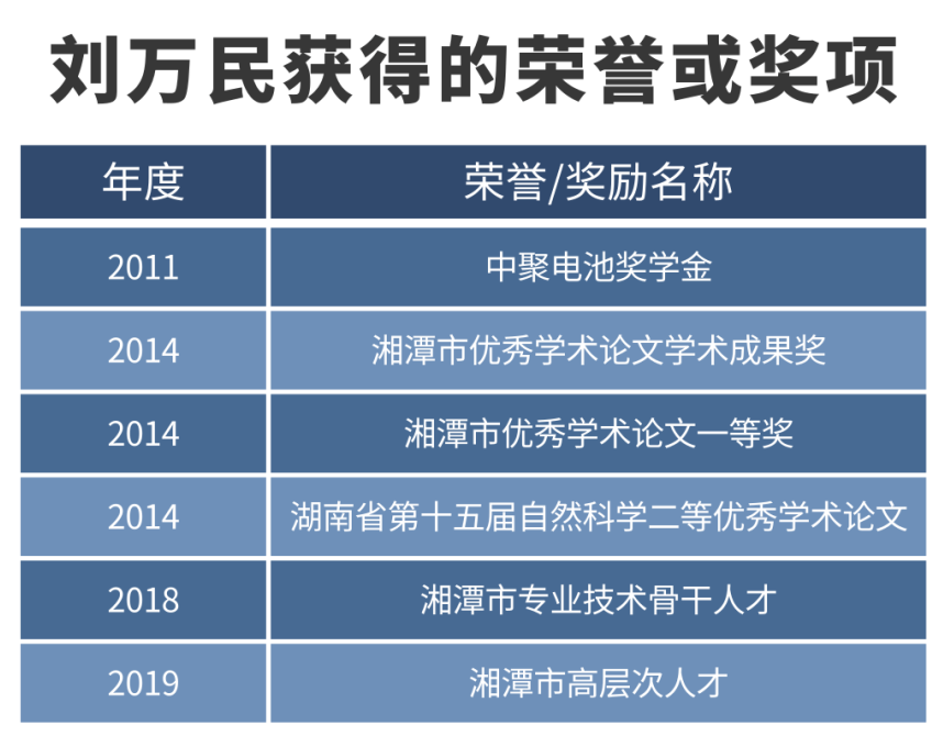 人物名片:刘万民,男,中共党员,博士,博士后,副教授,硕士生导师,Aalborg University(丹麦)国家公派访问学者,湖南省普通高校青年骨干教师,中国创新创业大赛评审专家,湖南省、江西省科技专家库专家,湖南省科技咨询与评审专家,湖南省自然科学基金评审专家,湖南省高新技术企业认定评审专家,湖南省技术标准创新促进会专家委员会专家,湖南省电源标准化技术委员会首届委员,湘潭市科学技术局与知识产权局科技专家,湘潭市科技创新智库专家,湘潭市科技特派专家,湘潭市专业技术骨干人才,湘潭市高层次人才D类(高级)人才,388vip太阳集团化学学科学术带头人、材料工程系系主任,“环境催化与废弃物再生化”湖南省重点实验室与“环境功能材料与污染控制”湖南省高等学校科技创新团队核心成员,湖南灿溪新材料有限公司技术总监,Journal of Power Sources、Electrochimica Acta、Journal of Alloys and Compounds等国际权威期刊审稿人。